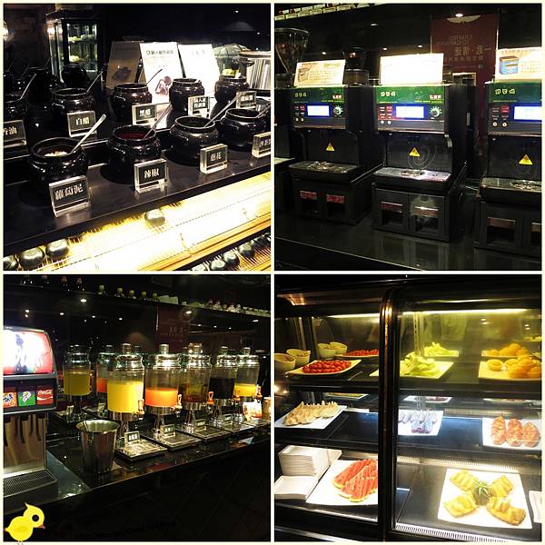 店內有高達十種以上的醬料、五種果汁、一台飲料機