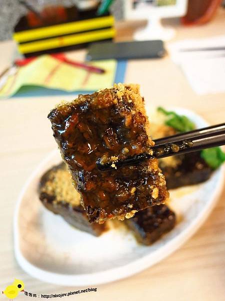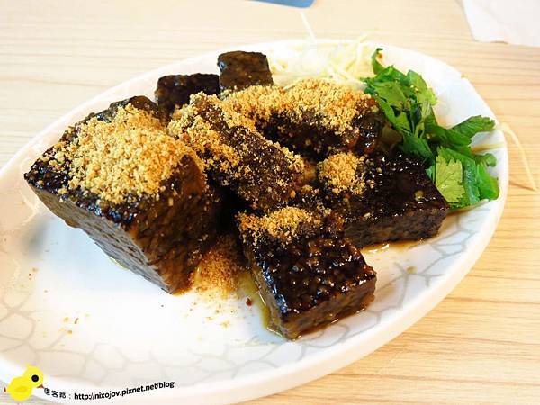 吃一口,豬血糕的醬油過於偏鹹,另外花生粉的味道沒有結合在一起