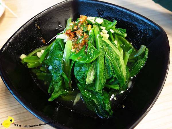 一小小盤份量不大上面撒了一點油蔥和蒜頭