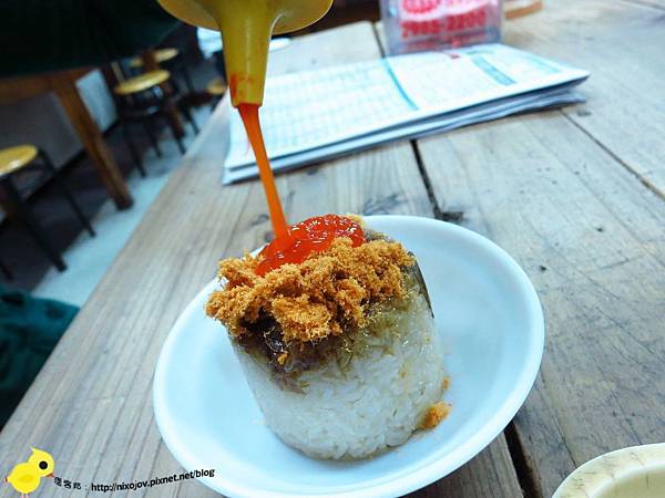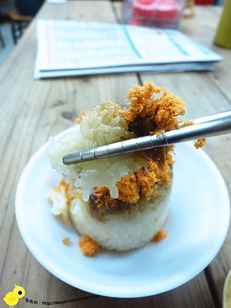 底層是香Q的糯米飯,中間是店家特製的滷肉