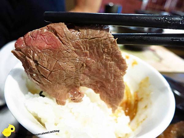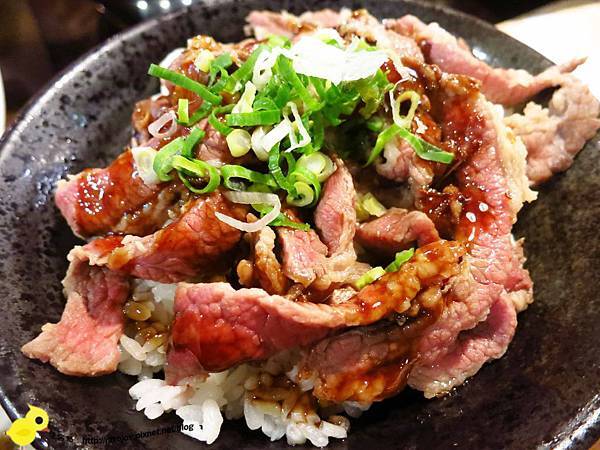 粉紅粉紅的溫體牛肉,再搭配上淋有牛油與店家特製醬油的白飯