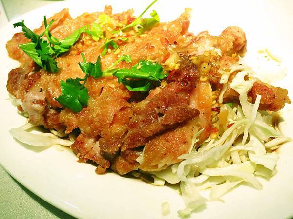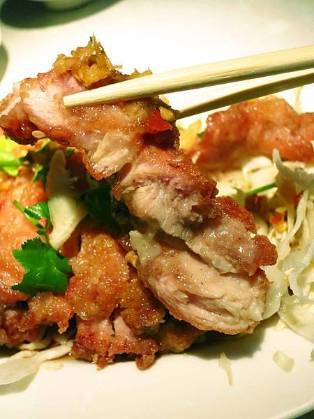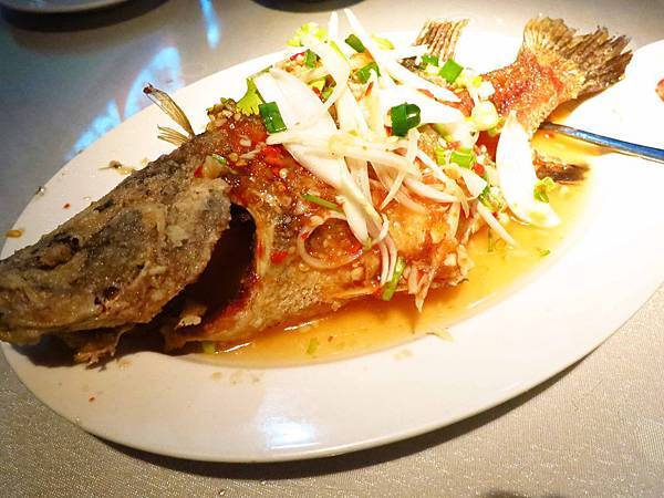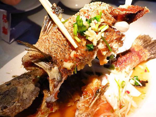 炸的金黃酥脆後,再淋上店家特製的改良版泰式酸辣醬