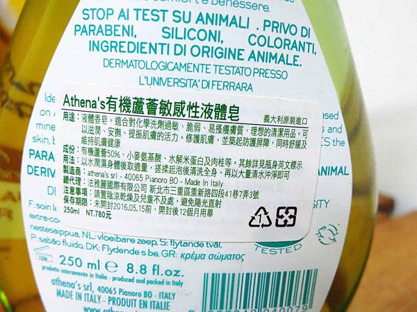 Athena's有機蘆薈敏感性液體皂
