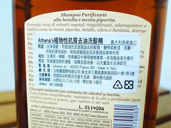 Athena's植物性抗屑去油洗髮精
