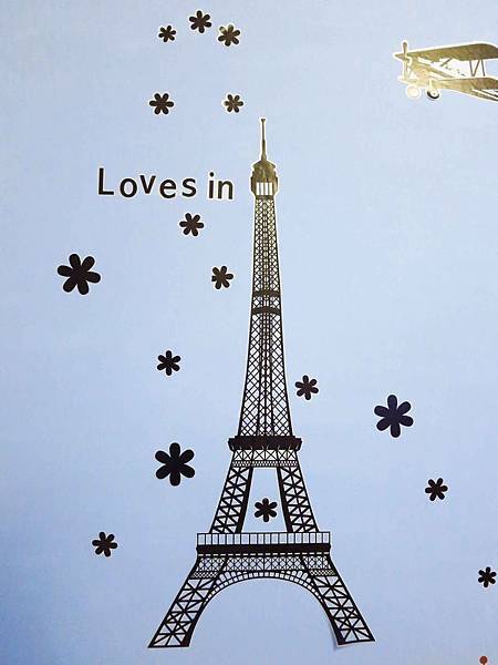 牆壁上有店家自行設計壁貼,呈現藍黑色調