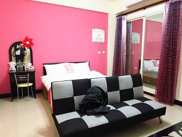 從牆壁的裝潢到窗廉,都是可愛的粉紅色