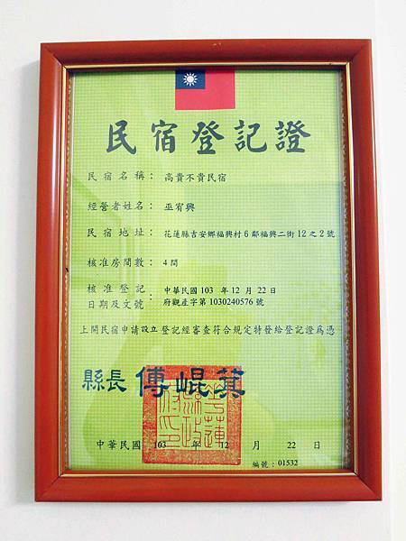 光看到這個就令人安心許多,因為現在很多民宿都是非法