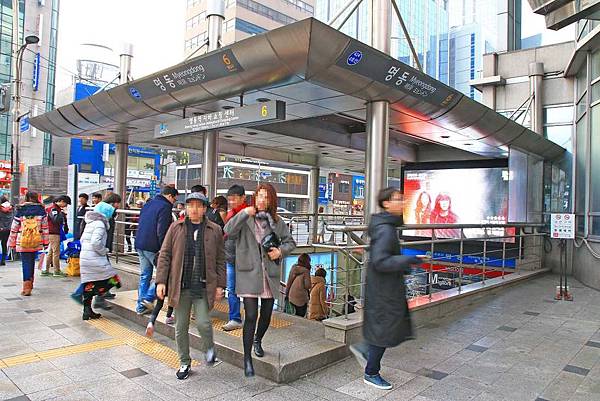 而明洞有一個大型的商圈,他的位置就位於地鐵站六號出口